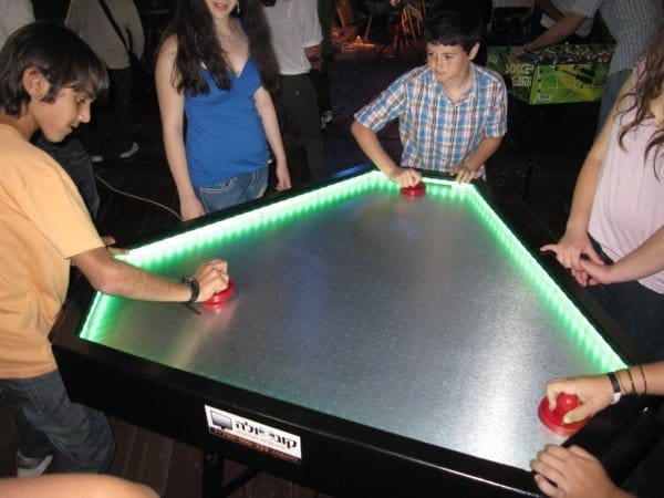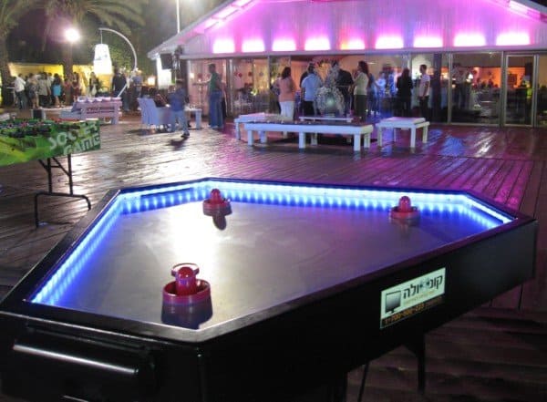 בלעדי בקונסולה אטרקציות לאירועים! שולחן הוקי בצורת יהלום לשלושה שחקנים בו זמנית. חוויה ייחודית, מהנה ומגבשת, שמתאימה לכל הגילאים. שולחן חדשני ומדליק המואר בתאורת LED צבעונית. |