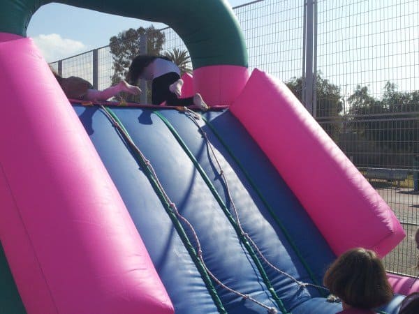 חוגגים אירוע בחצר הבית, במושב, אולי בקיבוץ? הילדים 'יעופו' על מגלשת טיפוס המתנפחת!