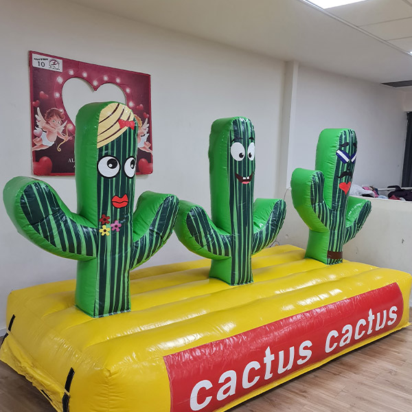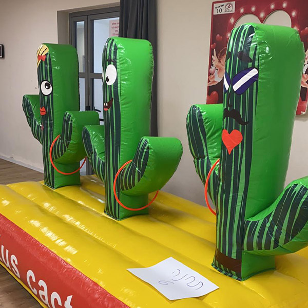 מתנפח מצחיק שמספק שעות של שעשוע. כל מה שצריך זה לזרוק חישוקים/כובעים לכיוון ראש הקקטוס. במידה ודייקתם – החישוק/כובע ינחת בדיוק על ראש הקקטוס. אם לא, לא נורא. סיבוב נוסף, עד שמצליחים! התמדה זה שם המשחק!
