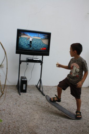 סימולציית משחק בה הילדים משתמשים באמצעות הסקייטבורד המלווה