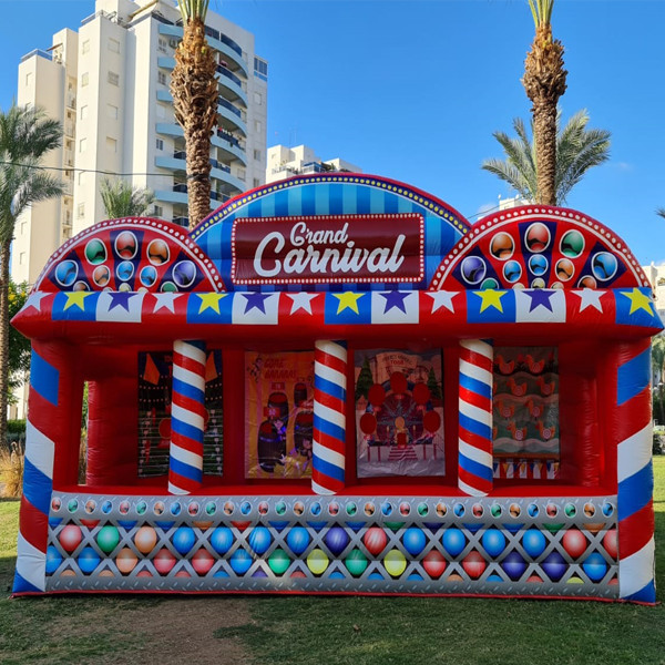 דוכנים ממותגים בצבעי אדום לבן כולל המון תכנים של משחקים מיוחדים לבחירה כגון הפלת פחיות, קליעה למטרה, קליעת חישוקים ועוד ועוד